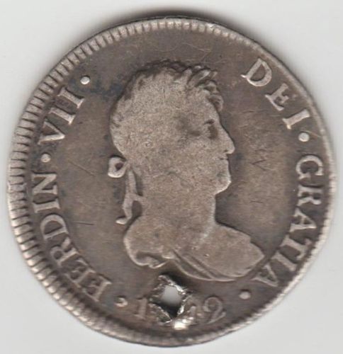 Title (ebay affiliate link): VERY NICE 1812 FERNANDO IV SILVER 2 REALE (HOLED)