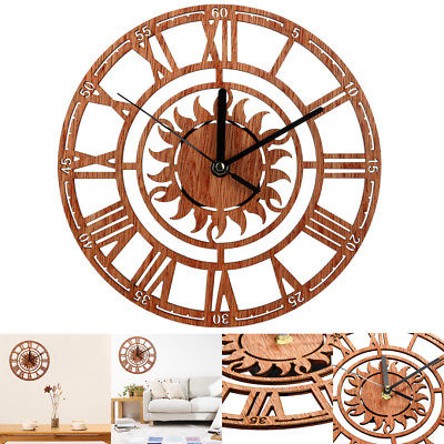 1x Wooden Wall Clock Shabby Chic Rustic Kitchen Home Wall Antique Watches Decor