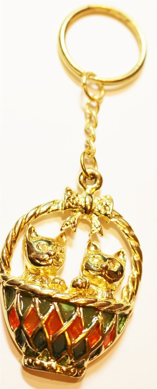 Vintage In Seattle Lot# 130 enamel gold tone cats in basket keychain