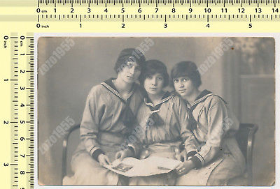 Title (ebay affiliate link): Three Females Girls in Sailor Dress Sit Closeness Vintage Orig. Photo Snapshot
