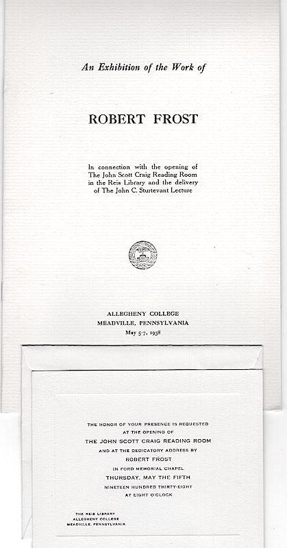 1938 Allegheny College EXHIBITION WORK OF ROBERT FROST Catalog & Invitation