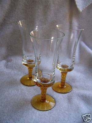 Title (ebay affiliate link): 3 Crystal & Amber Depression Glass Wine Goblets Stems