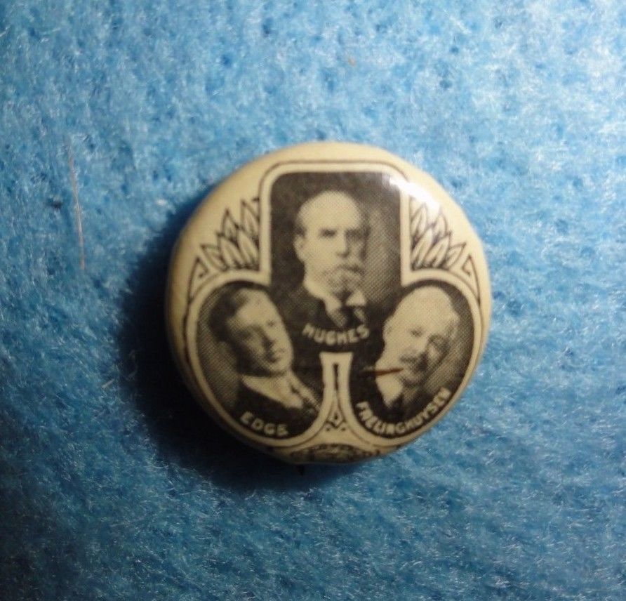 Title (ebay affiliate link): 1916 Charles Evans Hughes Political Pinback -- Hughes, Edge, Freylinghuysen.