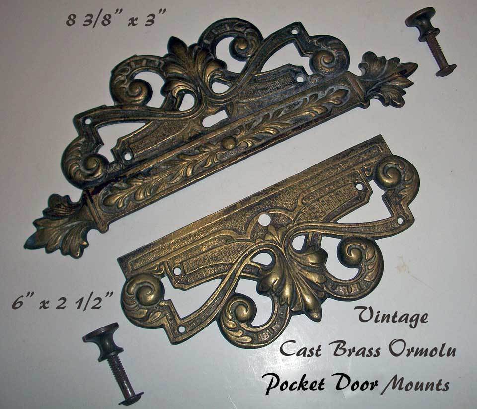 Title (ebay affiliate link): Vtg set Cast Brass Scrollwork Fleur De Lis ORMOLU Victorian Pocket Door Mounts
