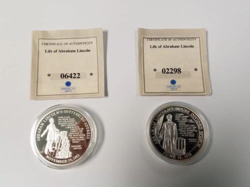 American Mint Life Of Abraham Lincoln Coins- set of two