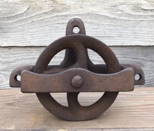 Title (ebay affiliate link): Vintage Cast Iron Wall-Mount / Beam-Mount / Pulley Wheel System