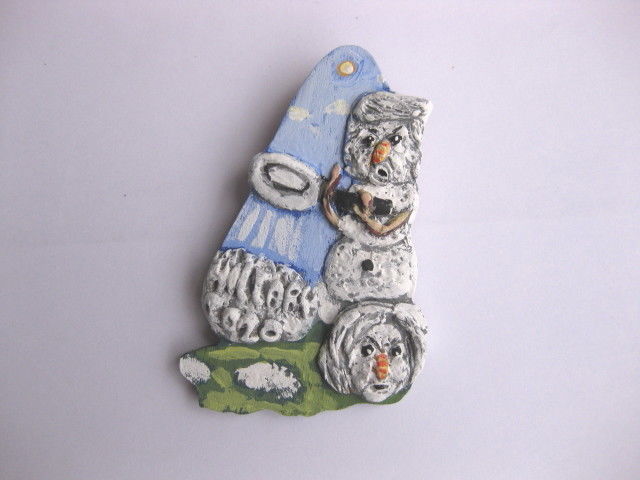 Title (ebay affiliate link): President Donald Trump Snowman melting Hillary 2020 Snow Woman Novelty Pin