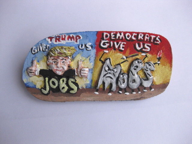 Title (ebay affiliate link): President Donald Trump " Gives Jobs, Dems Gives Mobs" Novelty Political Pin