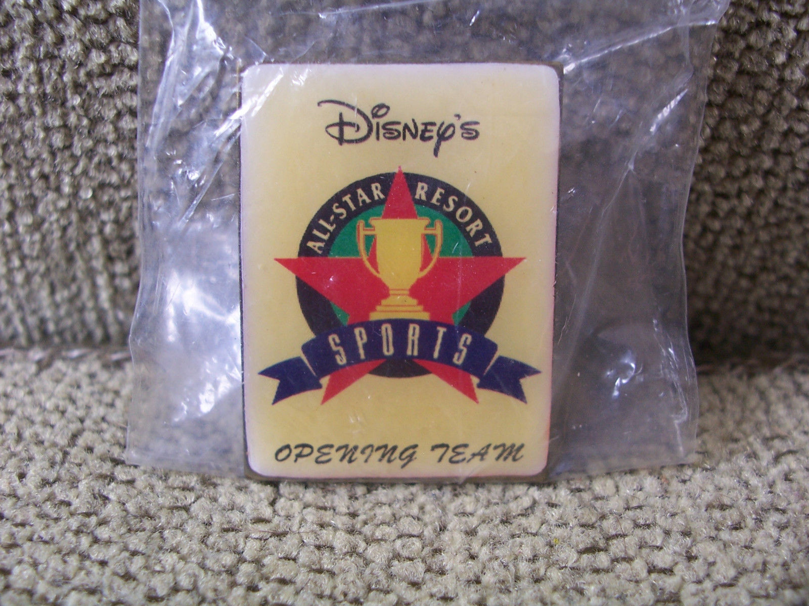 Title (ebay affiliate link): Disney WDW Resort All-Star Sports Resort Opening Team Pin New IN Plastic