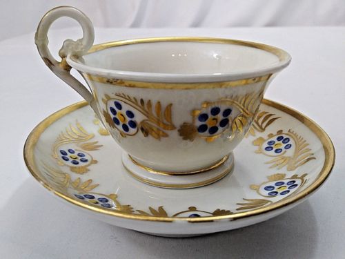 Antique Blue Flower with Gold Cup and Saucer c1900 American