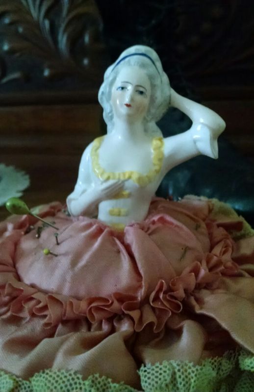 Antique Porcelain Half Doll Pin cushion #344 Germany marked on back