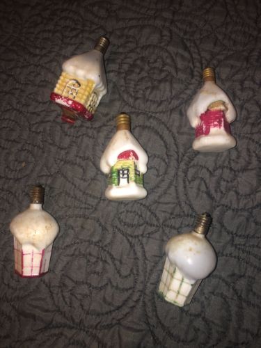 Title (ebay affiliate link): 5 Figural Houses Christmas Light Bulb Vintage Japan Lot Milk Glass