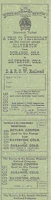 DRGW10 DENVER& RIO GRANDE WESTERN SOUVENIR CHILD TICKETS DURANGO TO SILVERTON