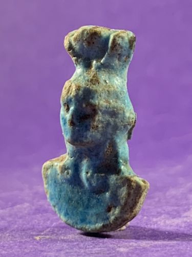 Title (ebay affiliate link): CIRCA 660-330BC BEAUTIFUL ANCIENT EGYPTIAN GLAZED FAIENCE PHARAONIC BUST AMULET