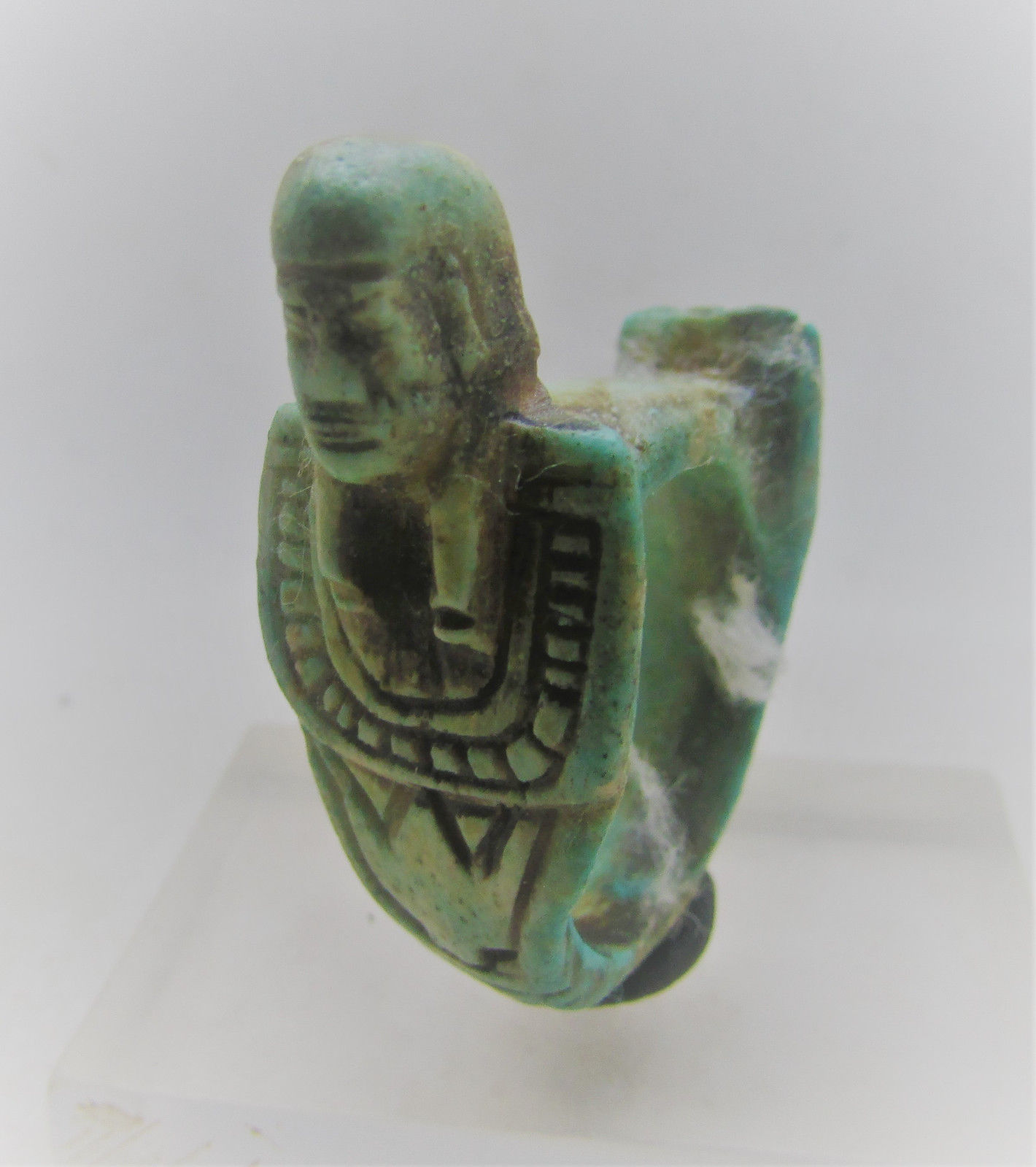 BEAUTIFUL UNDATED EGYPTIAN GLAZED FAIENCE RING WITH PHAROAH BUST