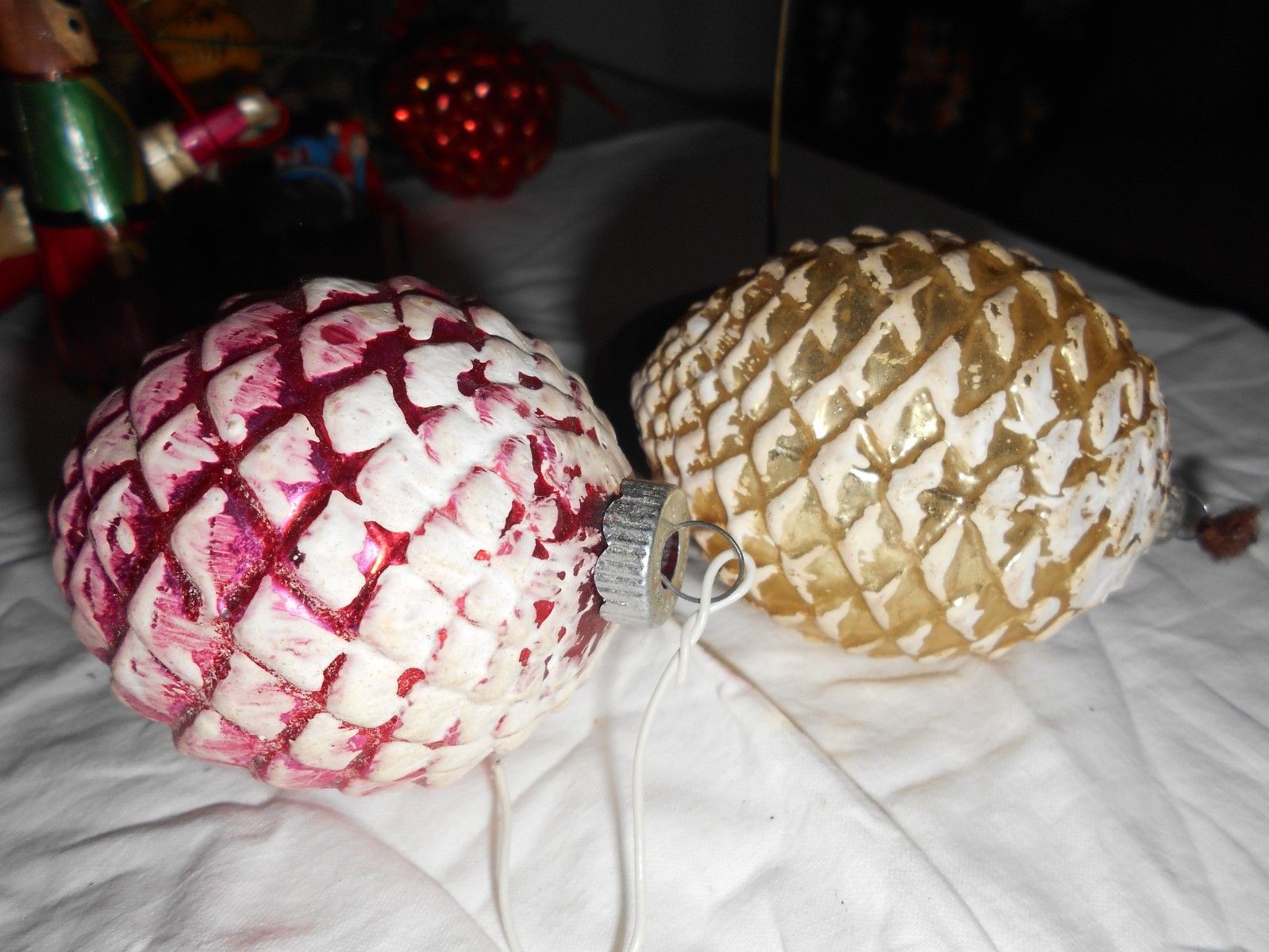 Title (ebay affiliate link): Antique Kugel celluloid or glass? Christmas Pinecones Ornaments w/Mica Snow