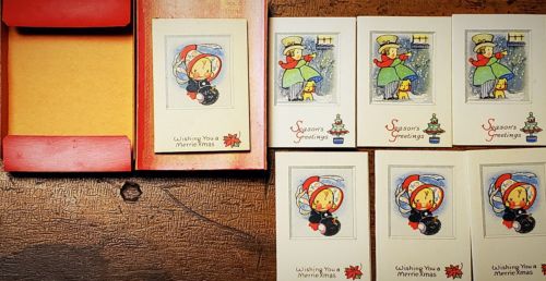 Title (ebay affiliate link): VINTAGE DENNISON CHRISTMAS GIFT CARDS , COMPLETE BOX of SIX - 2 STYLES, MINT