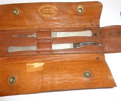 ANTIQUE SCALPEL SET REYNOLDS & BRANSON IN LEATHER CASE c 1900