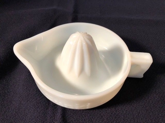 Retro 1950''s SUNKIST White Milk Glass Reamer Juicer Square D Handle