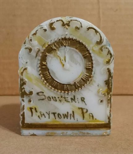 Souvenir of Maytown,Pa. (Lancaster Co.) Milk Glass Clock Candy Container,1900''s