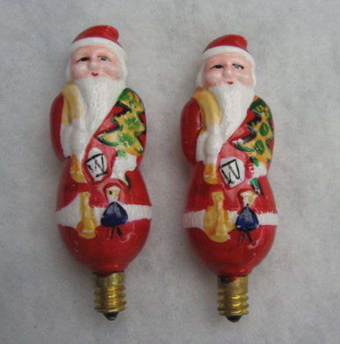 Title (ebay affiliate link): 2 Vintage Japan Painted Milk Glass Santa Claus Figural Xmas C7 Light Bulbs WORK