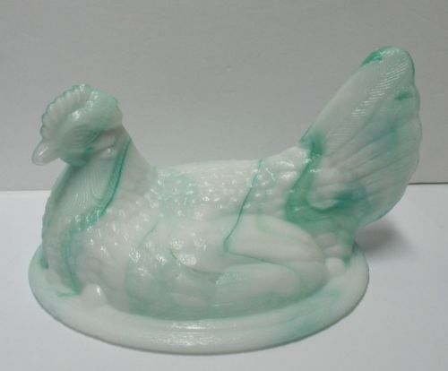 Title (ebay affiliate link): Vintage Green Slag & White Milk Glass Hen Rooster Nesting Candy Dish LID ONLY