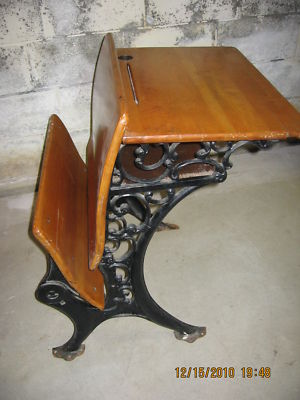 Vintage School Desk Wood and Scrolled Iron