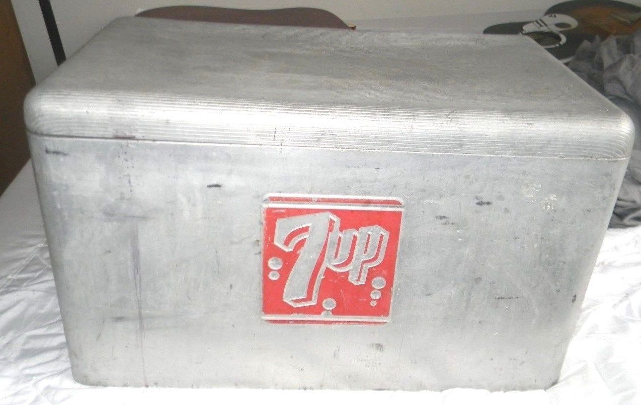 Title (ebay affiliate link): Vintage 7up Cooler Ice Chest Soda Advertising Cronstroms Aluminum Cooler