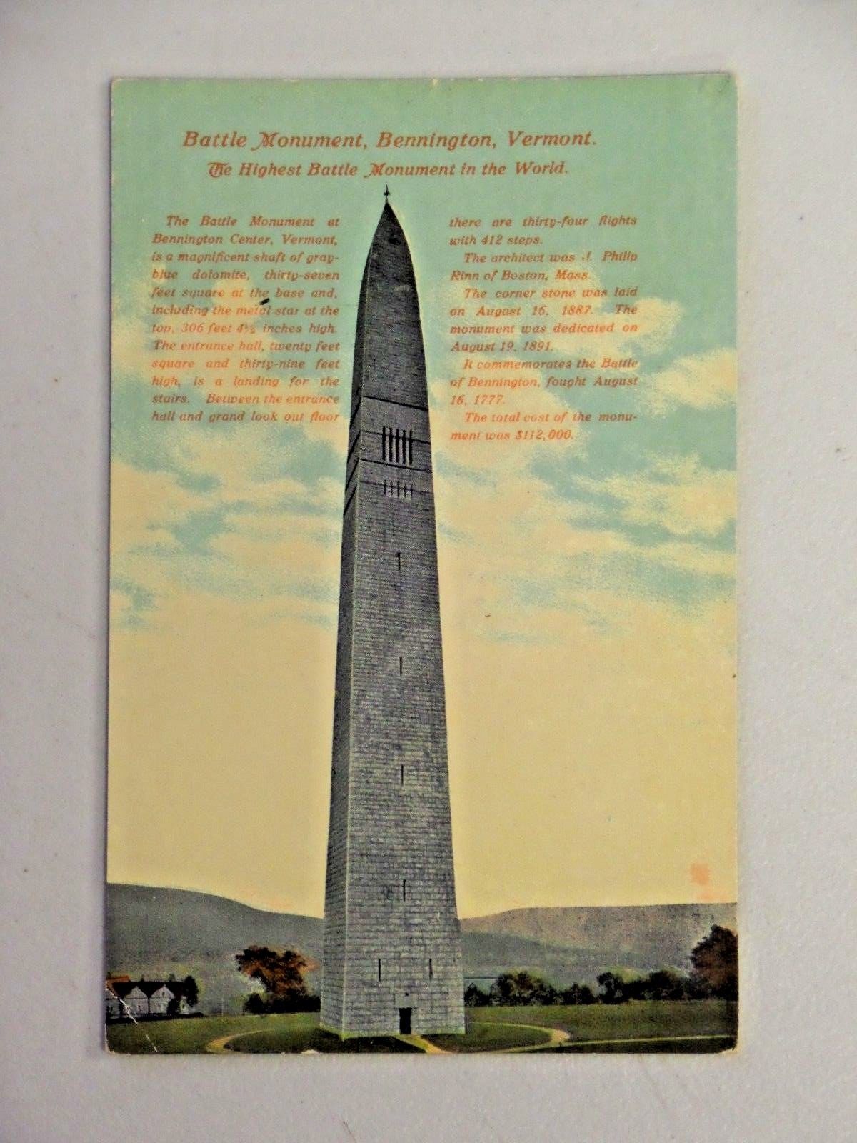 Title (ebay affiliate link): Vtg. Battle Monument, Bennington, Vermont Divided Back Postcard 1911 Post 2971