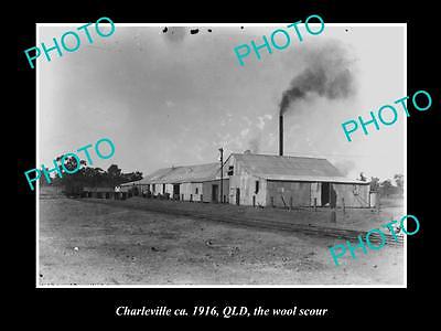 OLD LARGE HISTORIC PHOTO OF CHARLEVILLE QLD, THE OLD WOOL SCOUR BUILDING c1916