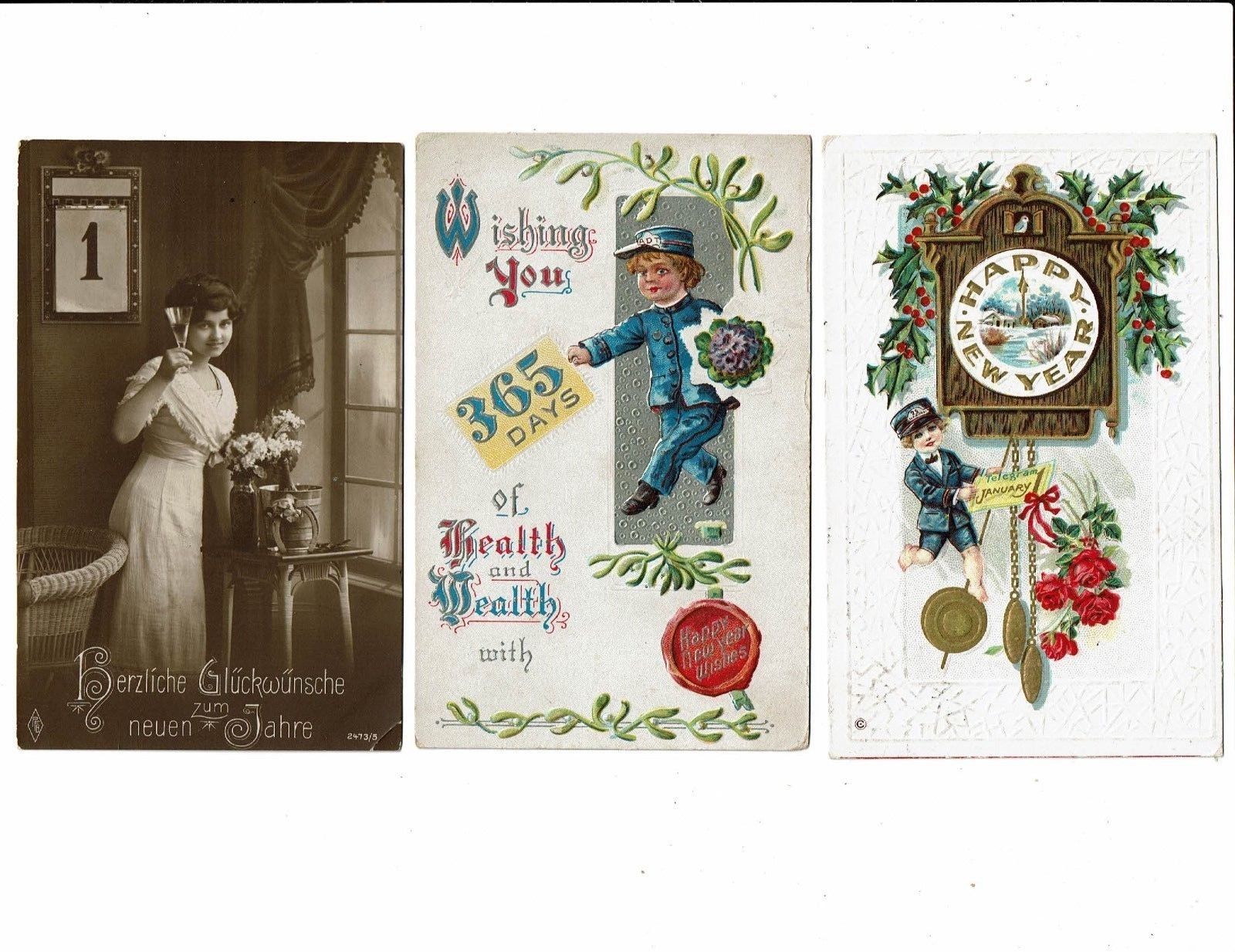 Title (ebay affiliate link): 3 Card Lot, New Year Holiday, Lady Gives Toast, Little Boys Bring Telegrams!