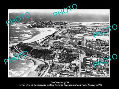OLD LARGE HISTORIC PHOTO OF COOLANGATTA QUEENSLAND, AERIAL VIEW OF TOWN c1950