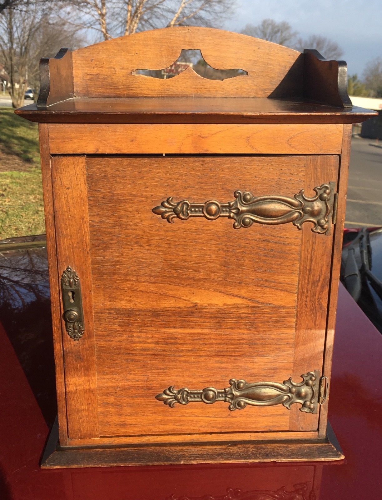 Title (ebay affiliate link): Nice Old Arts & Crafts Era Wood with Copper Wall Cabinet