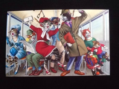 Title (ebay affiliate link): c1950''s Alfred Mainzer Dressed Cats, Trolley Car Scene #4733 Vintage Postcard
