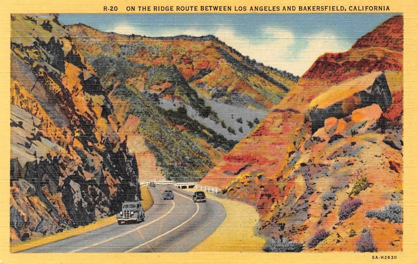 Title (ebay affiliate link): C0427 On Ridge Route Between LA and Bakersfield CA - 1936 Teich Linen Postcard