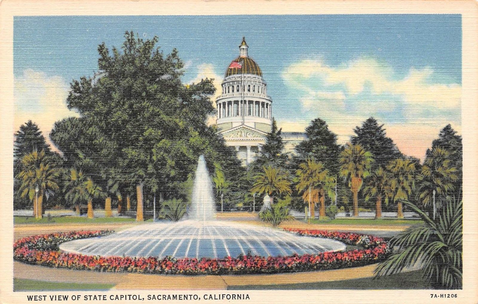 Title (ebay affiliate link): C0432 West View of State Capitol, Sacramento CA - 1937 Teich Linen Postcard