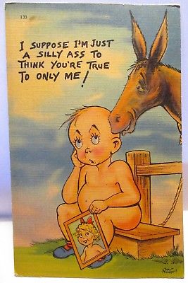 Title (ebay affiliate link): 1940s POSTCARD I SUPPOSED IM A SILLY ASS TO THINK YOU''RE TRUE TO ONLY ME