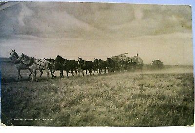 Title (ebay affiliate link): 1907 POSTCARD OVERLAND FREIGHTING IN THE WEST,RIDGLEY CALENDAR CO GREAT FALLS MT