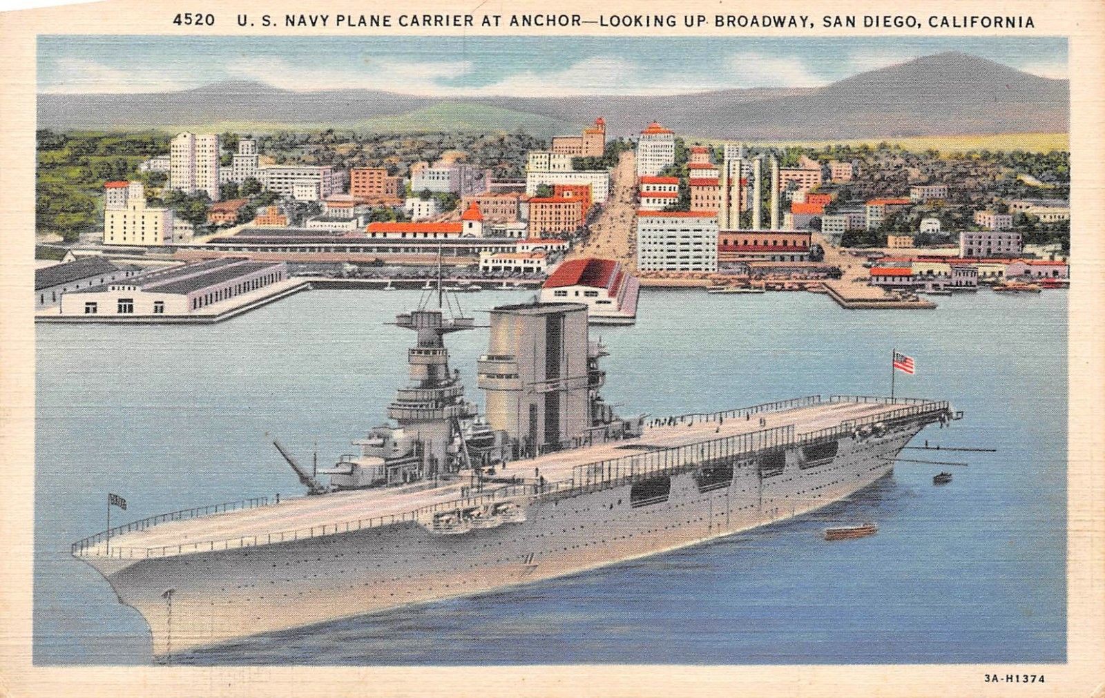 Title (ebay affiliate link): C0436 US Navy Plane Carrier at Anchor San Diego CA - 1943 Teich Linen Postcard