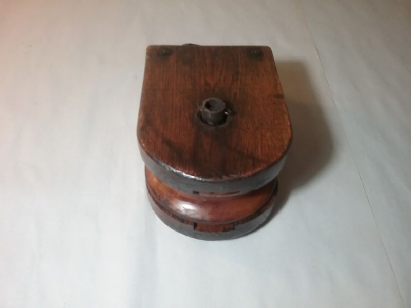 Title (ebay affiliate link): ANTIQUE CAST HOOK WOODEN BLOCK PULLEY WITH SINGLE WOODEN WHEEL