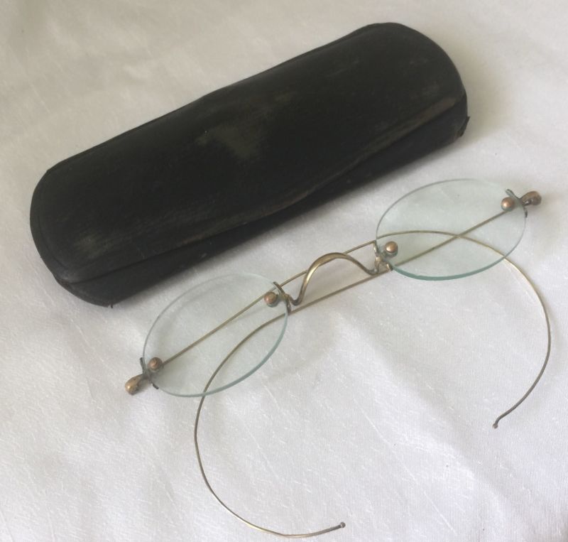 Title (ebay affiliate link): ANTIQUE Gold Tone Civil War Looking RIMLESS Eyeglasses Spectacles with Case