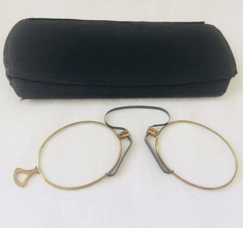 Title (ebay affiliate link): ANTIQUE Gold Tone w/ BLUED STEEL NOSE Spr. Bridge PINCE Nez SPECTACLES with Case