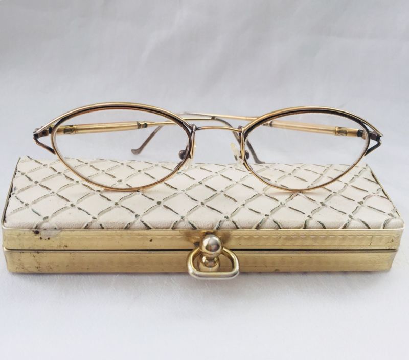 Title (ebay affiliate link): VINTAGE GOLD Tone / Filled? CAT EYE Eyeglasses RETRO Snap Case