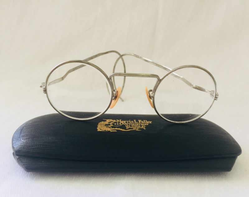 Title (ebay affiliate link): Antique Silver Tone / White Metal ROUND Eyeglasses with ART DECO Case