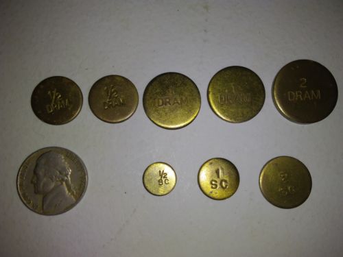 Vintage Apothecary Scale Weights Drams Scruples Brass? Coins Tokens