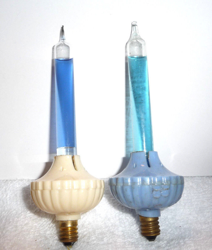Title (ebay affiliate link): VINTAGE BUBBLE LIGHTS TWO ROYALS VERY UNUSUAL BLUE COLOR BLUE IN WHITE BASE