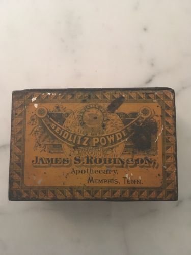 Title (ebay affiliate link): Seidlitz powder tin, James S. Robinson Apothecary Memphis Tenn
