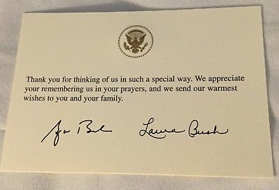 Title (ebay affiliate link): PRESIDENT GW BUSH SIGNED GEORGE LAURA CARD WHITE HOUSE THANK YOU GOLD EAGLE