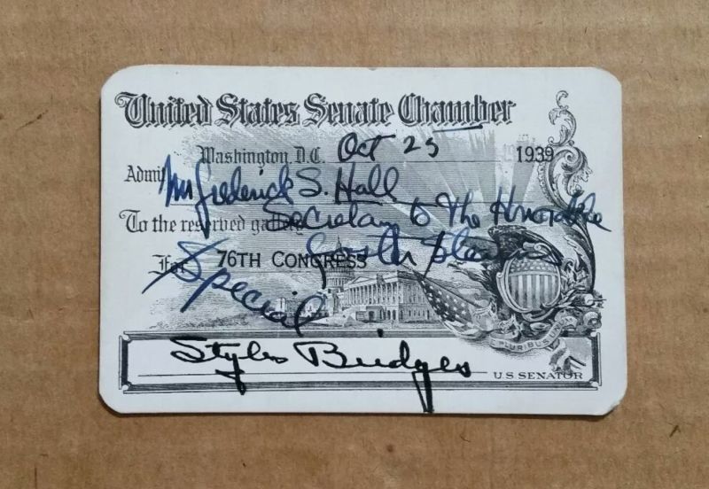 Title (ebay affiliate link): U.S. Senate Chamber Pass,Washington,D.C.,1939