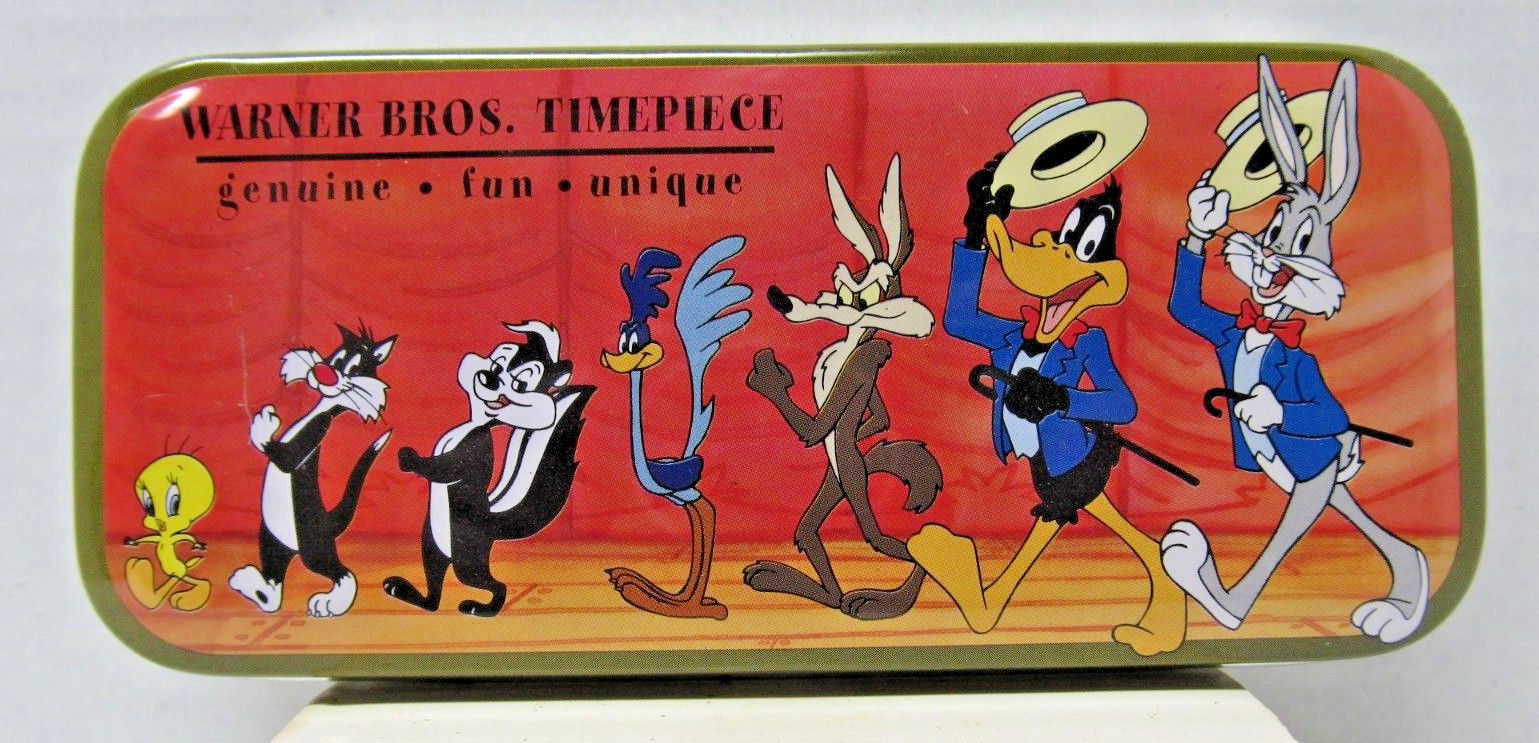 Title (ebay affiliate link): Warner Brothers - Looney Tunes - Tin Box - timepiece - bugs bunny & more (180)